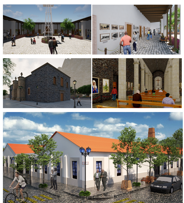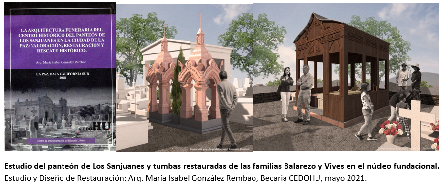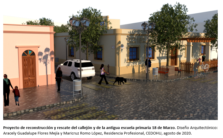 Jardín Interior y corredor del Museo de Historia de la Ciudad de La Paz en la reconstrucción de la antigua Casa de Gobierno.  Diseño de interiores: Diana Castillo Solís, Servicio Social, CEDOHU, 30 abril 2021. Museo de Historia de los Pueblos Misionales de la Sierra de la Giganta en la reconstrucción del antiguo templo de tres naves de la Misión de San José de Comondú. Diseño Arquitectónico: David Alexis Carballo García, Residencia Profesional, CEDOHU, diciembre de 2020.  Museo de Historia de la Curtidería en la Ciudad de La Paz en la restauración de la antigua fábrica Tenería Suela Viosca. Diseño Arquitectónico:  Alejandra Estrada Franco y Magaly Kariana Pantoja López, Residencia Profesional, CEDOHU, septiembre de 2020.