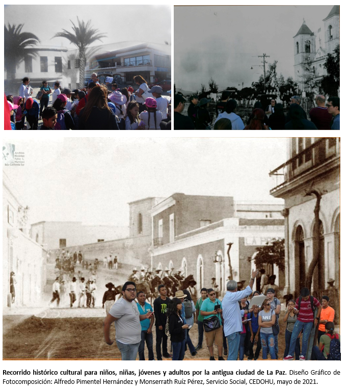 OCTAVO. Antes de que sea demasiado tarde hay que incorporar en todos los niveles educativos los recorridos histórico-culturales que realicen los profesores como práctica docente y que se llevan a cabo en forma gratuita desde hace varios años, antigua Ciudad de La Paz y sus Alrededores, por el núcleo fundacional del antiguo panteón de Los Sanjuanes, por el Templo Masónico hasta la antigua Escuela No.48 pasando por la antigua Tenería Suela Viosca y próximamente por el antiguo territorio de los indios Californios (El Mogote, El Conchalito, el cerro de la calavera, El tecolote-Pulguero y por la Sierra de Cacahilas).