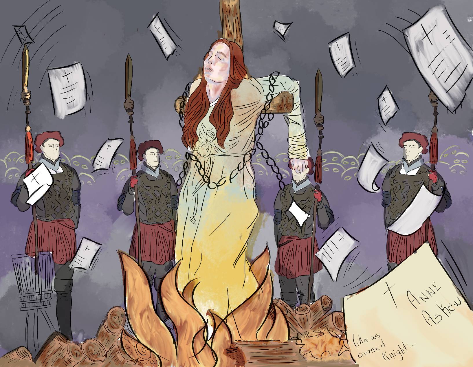 En junio de 1546 el rey debía firmar la ejecución de Anne. Enrique VIII estaba al borde de la muerte, viejo y enfermo, el reino se debatía entre la lucha de católicos y reformistas. Los conservadores, entre los cuales estaban algunos jueces de Anne, conspiraban contra el partido de la Catalina Parr, sexta esposa del rey y su hermano William, marqués de Northampton. Aparentemente Anne estaba relacionada con el círculo de los Parr por lo que la condena de herejía era en realidad un pretexto y la tortura un medio para sacarle nombres de posibles conspiradores.