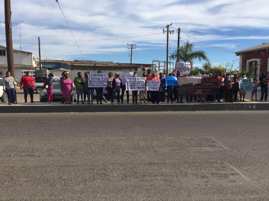 Hace 20 años fueron despedidos injustificadamente 100 trabajadores que maquilaban calamar en el puerto de Santa Rosalía Baja California Sur, en su inmensa mayoría mujeres quienes presentaron una demanda laboral que ganaron, pero la autoridad laboral excluyó a 96 de las 100 trabajadores por una maniobra legaloide, dejando en estado de indefensión a la mayoría.