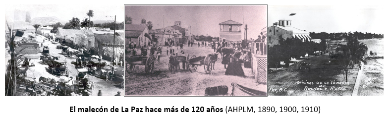 Hace 100 años, la tranquilidad de La Paz hacía honor a su nombre, el arroyo de las calles iban de manzana a manzana, no había baquetas, solo unas mojoneras de piedra cantera en las esquinas que marcaba su límite con la calle que marcaba el límite de lo que serían las banqueta, aunque sí había muchos árboles de sombra y solo transitaban unos cuantos vehículos por las arenosas calles, por lo que las personas caminaban libremente; solo había tres barrios, el Centro que se dividía en el Centro de arriba y el centro de abajo que abarcaba el lugar donde estaba el muelle y las tiendas como La Perla de La Paz; ahí convivían las familias pudientes que predominaban, la de los empleados y la de familias de bajos ingresos; y dos barrios populares donde vivían en su mayoría las familias de pescadores y otras familia de trabajadores, el Esterito a lo largo de la playa norte y el Manglito a lo largo de la playa sur; muy rara vez se veía circular algún carro, pues había unos cuantos; había más carretas de tracción animal que transportaban mercancías y acarreaban agua; solo estaba el hospital Salvatierra en el Esterito, unas cuantas escuelas de primeras letras en el Centro, un solo teatro, el Juárez, únicamente dos parques, el Porfirio Díaz en el Centro y otro en el Esterito.