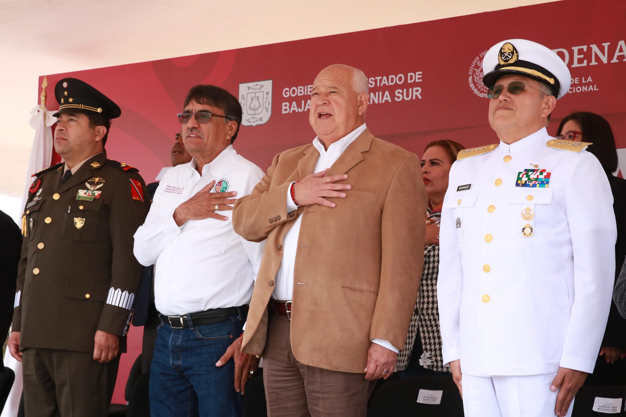 Y reiteró que “es este el mejor lugar para conmemorar a la enseña nacional en su día, en la comunidad de Buenavista, el hermoso rincón de la patria que se abraza de las serenas y tranquilas aguas del mar de Cortés. Ondea la majestuosa y soberana bandera nacional, la que nos distingue y representa como nación, la que nos acompañó en las diferentes etapas de la transformación de la vida nacional, y desde la lucha de la Independencia con Hidalgo y Morelos, a la guerra de la Reforma con Benito Juárez y en la gran Revolución Mexicana con Madero, Zapata, Villa y Obregón”.