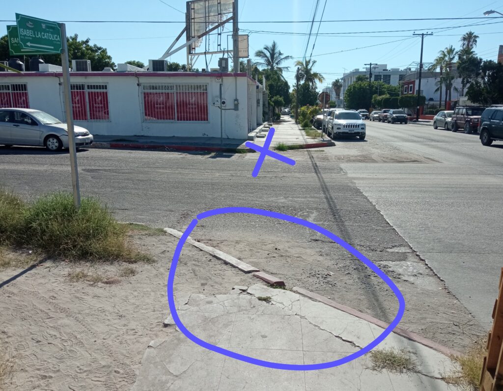 Aquí nos enviaron las fotografías de los cruces y donde claramente se alcanza a apreciar que no existe ningún mecanismo de inclusión. Así que lo decimos, esto no es un capricho de algunos cuantos, es un derecho que se tiene que ejercer para adaptar espacios que sean de fácil tránsito para las personas que conviven con alguna discapacidad. Y ojo, estos no son los únicos lugares en donde se puede mirar una deficiente obra. Hay que hacer que la información llegue a los corresponsables y que se actúe de buena fe.