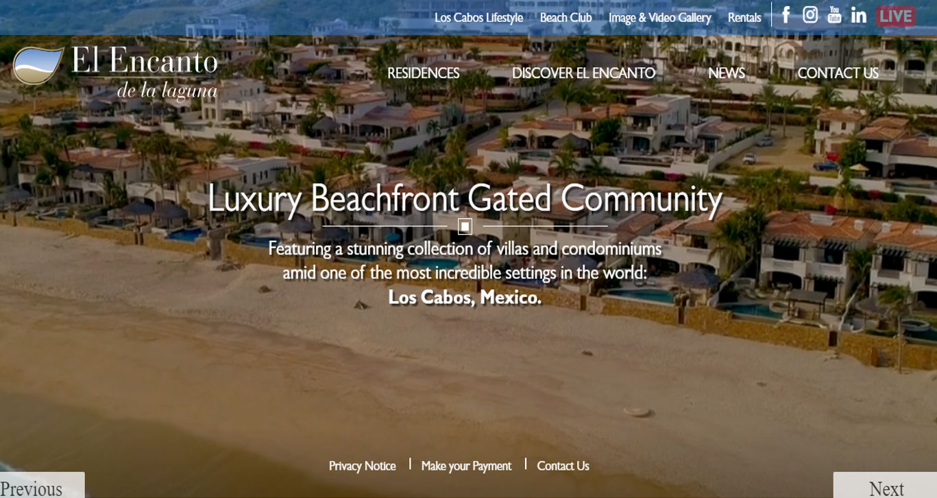 El Encanto de la Laguna bloqueó el acceso a la playa a todos menos a sus clientes. Como los dice en su página: “Es ahora una comunidad de lujo frente al mar, reconocida como una ubicación inmobiliaria privilegiada en San José del Cabo”.