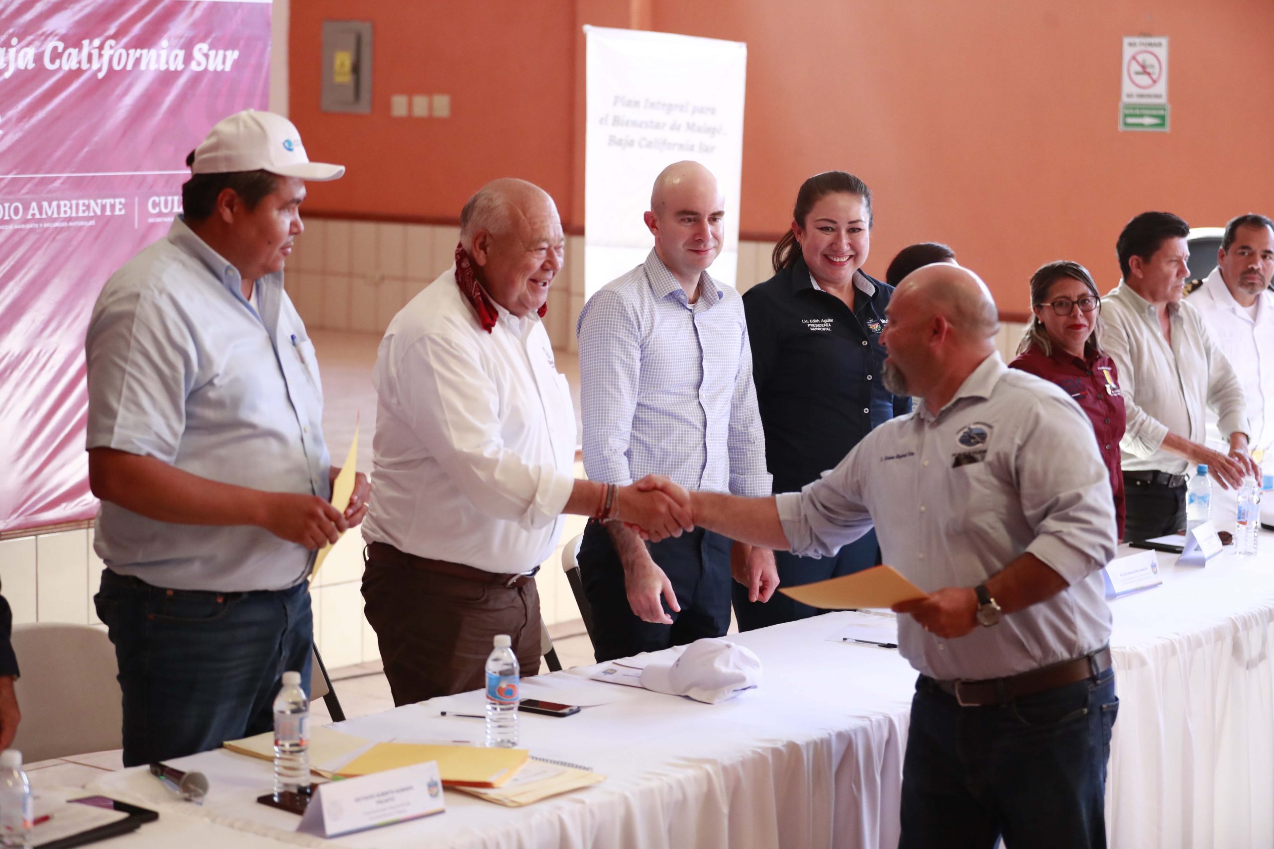 Ante la presencia de la alcaldesa de Mulegé, Edith Aguilar Villavicencio y de Carlos Torres, Coordinador de Programas para el Bienestar y representante del presidente de la República, el titular de la CONAPESCA resaltó el trabajo que se está realizando con la presente administración estatal, el cual permite avanzar de manera significativa en la atención de añejos reclamos y necesidades que presentan la pesca y la acuacultura en la entidad.