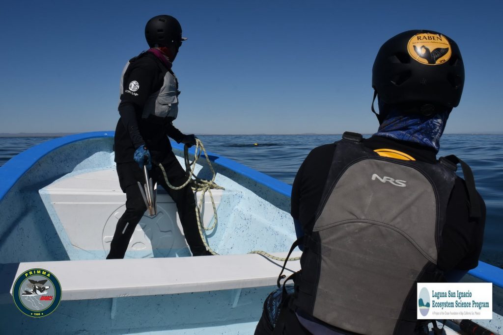 Integrantes del Programa de Investigación en Mamíferos Marinos. Departamento Académico de Ciencias Marinas y Costeras de la Universidad Autónoma de Baja California Sur (UABCS), que colaboran dentro del Programa Científico del Ecosistema Laguna San Ignacio, realizaron las maniobras para salvar al cetáceo bebé.