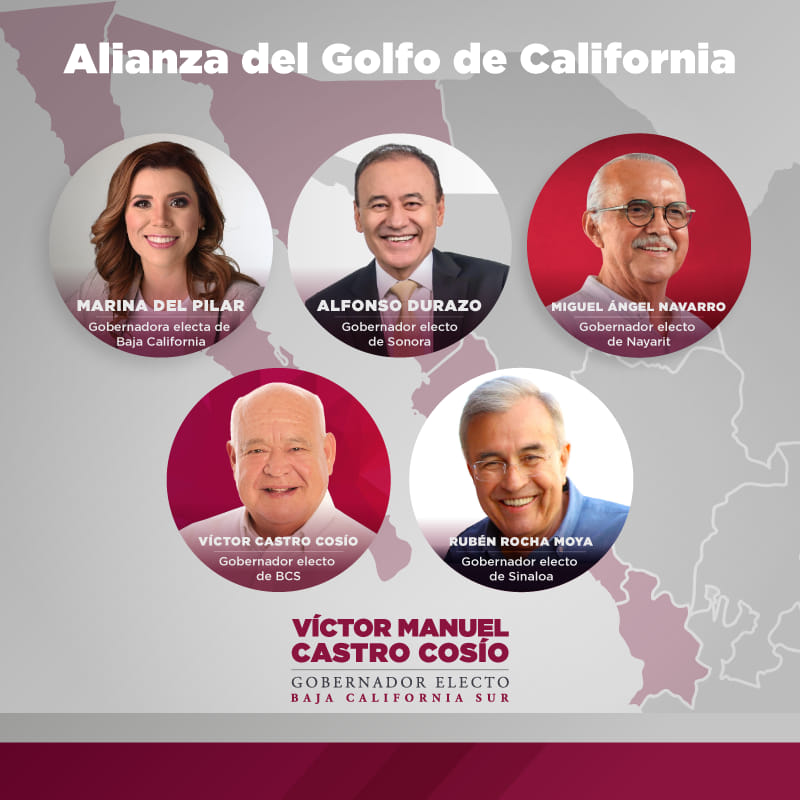El gobernador electo de Baja California Sur, Víctor Castro Cosío, anunció que acaba de nacer la Alianza del Golfo de California, conformada por los estados de Baja California, Sonora, Sinaloa, Nayarit y BCS.
