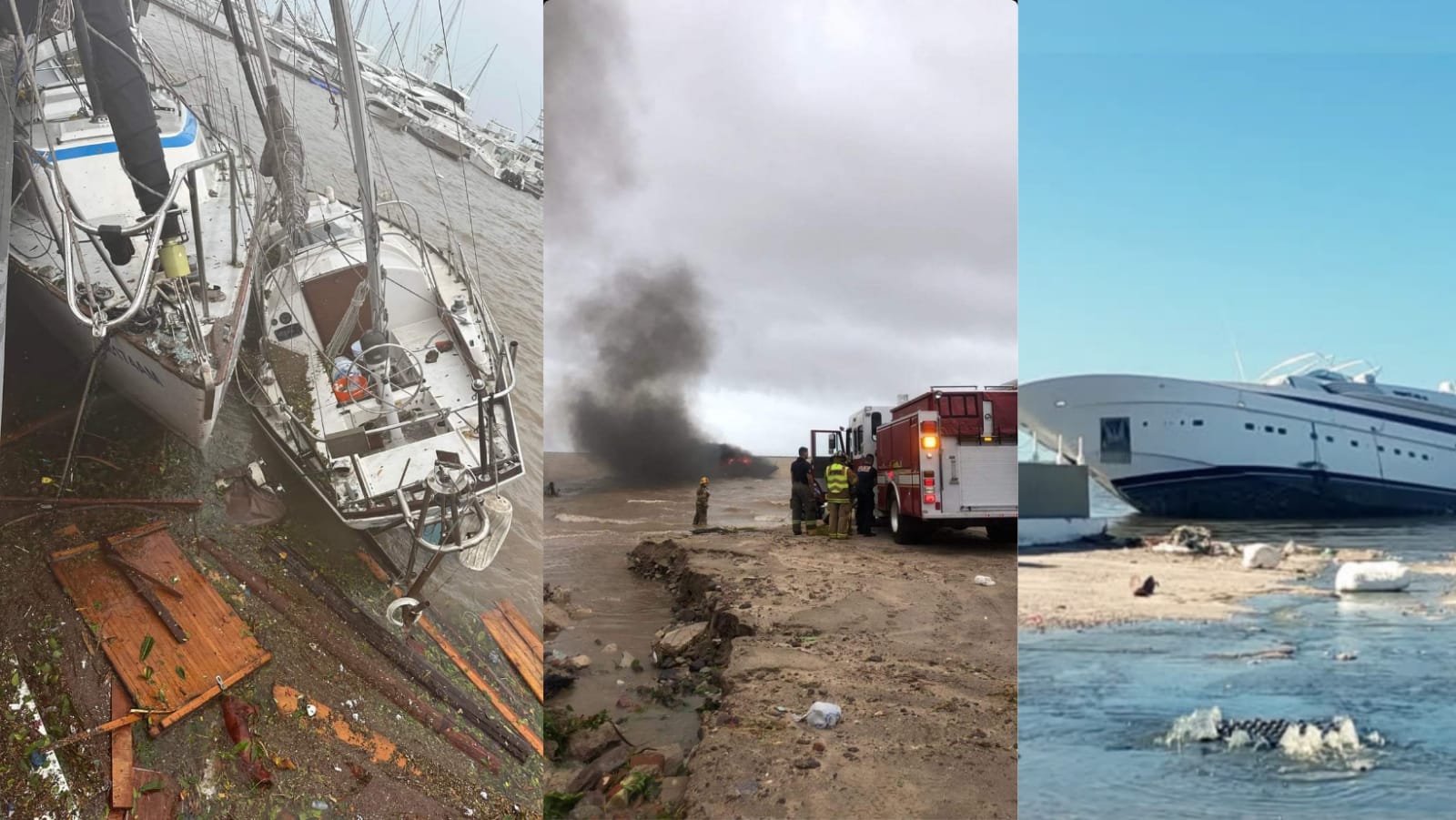 Quedando varados tanto en la región naval como a lo largo del malecón. Se ha observado que al menos tres veleros se han hundido, lo que podría representar un peligro para las embarcaciones menores que navegan en la zona.