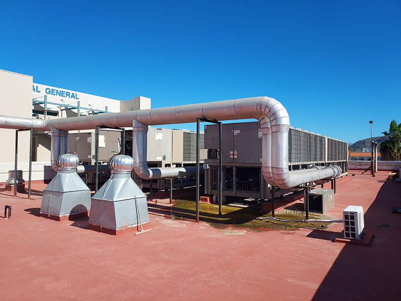 Se atiende el cuarto de máquinas con servicio de mantenimiento profundo a las plantas auxiliares de energía, así como a la subestación eléctrica. Se lleva a cabo una limpieza profunda y arreglo de cisternas; se establece un sistema de bombeo de agua potable, suavizador de sales, calentador de agua, entre otros equipos que proveen de líquido tanto al edificio como a dispositivos médicos de gran relevancia como son el tomógrafo y la resonancia magnética.