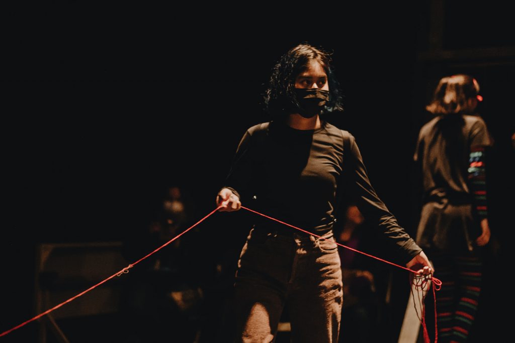 Son los momentos previos a la función. Los actores ensayan por última vez la escena final; no hubo tiempo para ensayar la obra completa, por lo que algunos de los actores están más nerviosos que de costumbre. “Los micrófonos no funcionaron, así que su voz y su energía serán lo que tendrán que usar”, instruye desde el centro del escenario la dramaturga Virginia Hernández*, justo al lado de la llanta que dentro de poco se convertirá en la entrada al mundo subterráneo de “Laberintos”, puesta en escena con dirección del maestro Fernando Rojero**. Alrededor hay sillas dispuestas con hilos rojos cruzados que llevan a cada uno de los asientos.