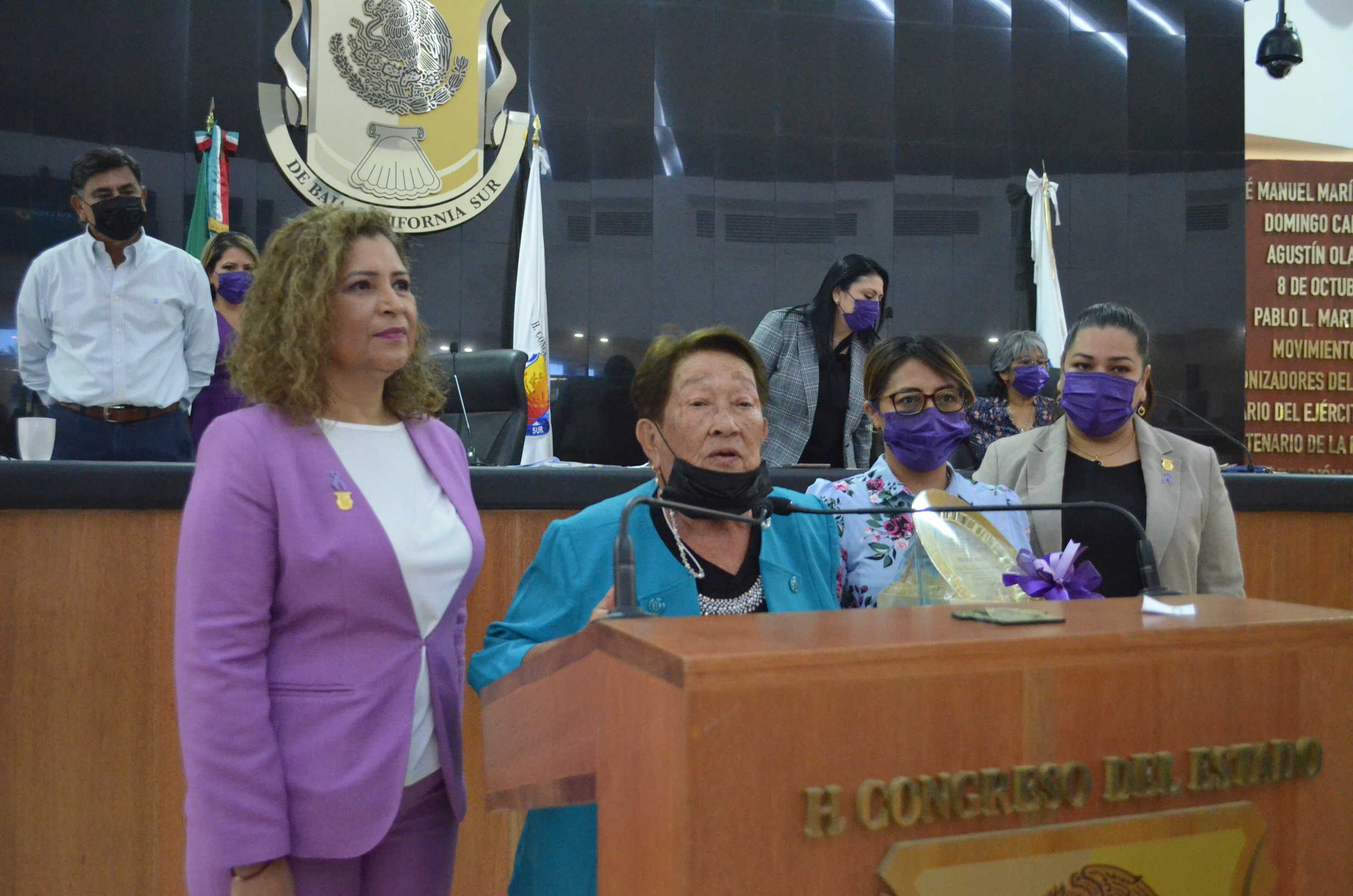 Al recibir el reconocimiento, María Luisa Salcedo externó su agradecimiento al mencionar que Baja California Sur fue el pueblo de sudcaliforniana impulsor de la igualdad jurídica, al ser ella primera diputada constituyente en el país.