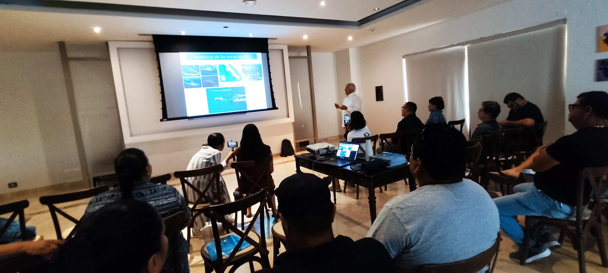 La plática, dirigida al sector del turismo náutico de La Paz, fue celebrada en la antigua casa de gobierno de El Caimancito, donde ahora opera un hotel boutique de lujo y exclusivos restaurantes.