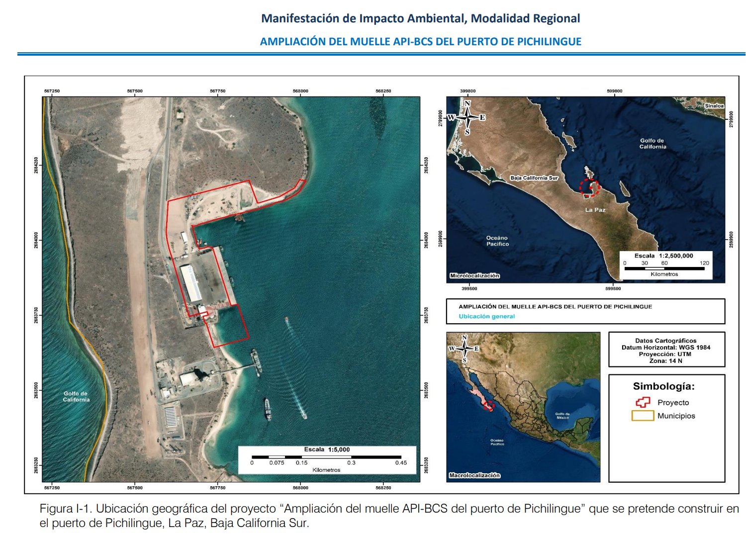 La MIA del proyecto «Ampliación del muelle API-BCS del puerto de Pichilingue» es un documento de 634 páginas en el que constan la explicación de las tres fases de la construcción del proyecto: demolición y reubicación de la infraestructura operativa de la API-BCS, construcción del centro turístico y ampliación del muelle de usos múltiples número dos.